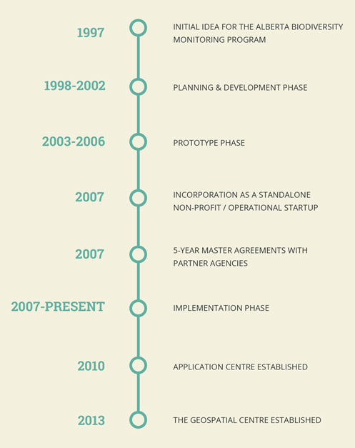 In 1997 a group of energetic resource managers and leading scientists recognized a gap in the management system and started contemplating what the Alberta Biodiversity Monitoring Program (which later became the ABMI) would look like. They began by designing an inventory prototype that would be science-based and comprehensive across the province of Alberta.